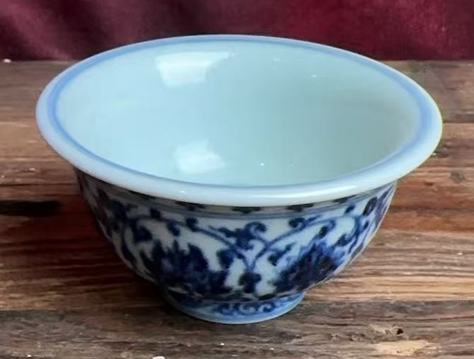 名称:明永乐青花缠枝莲纹压手杯