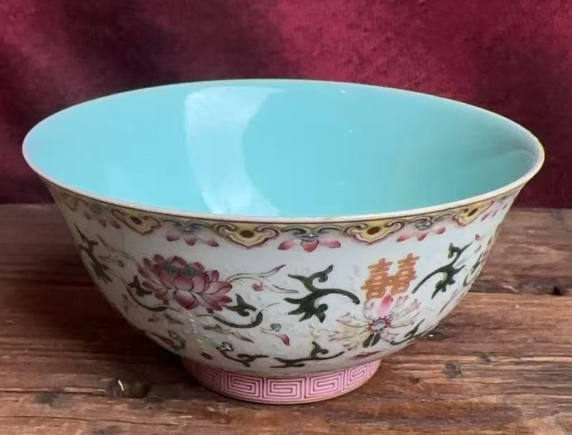 名称:清道光粉彩花卉纹喜字碗