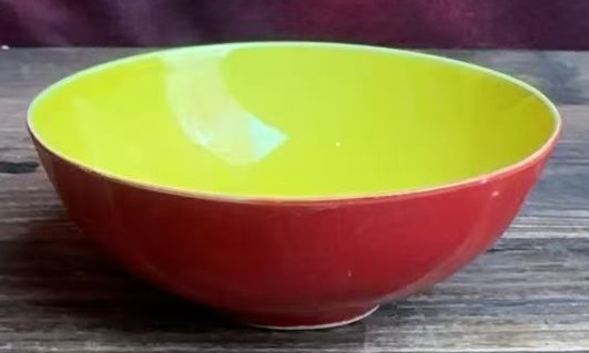 明成化外霁红釉内黄釉暗刻龙纹碗