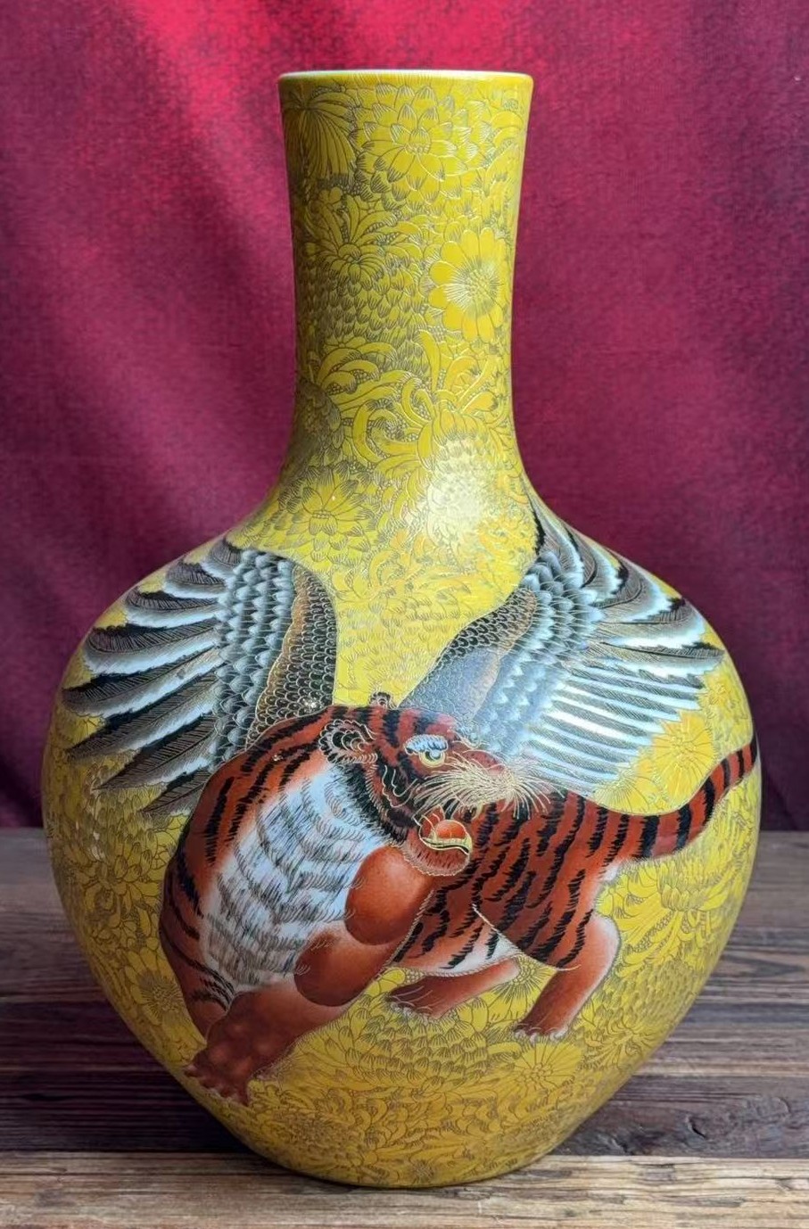名称:清乾隆黄地掐丝珐琅如虎添翼天球瓶