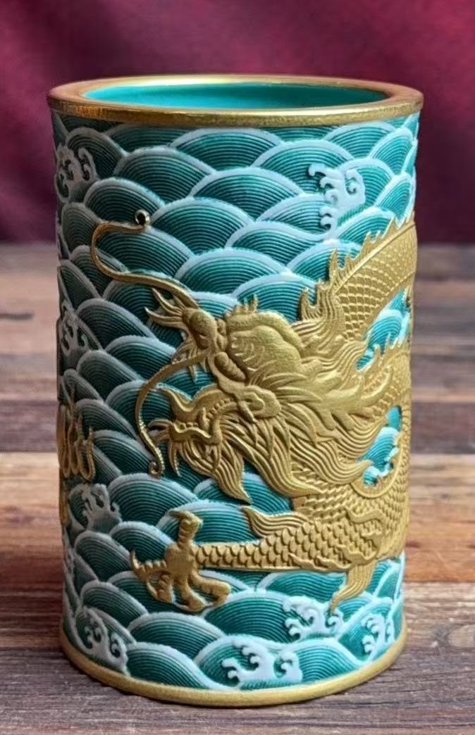 名称:清乾隆粉彩描金海水龙纹笔筒