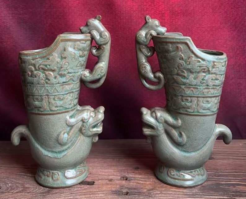 青瓷龙虎杯