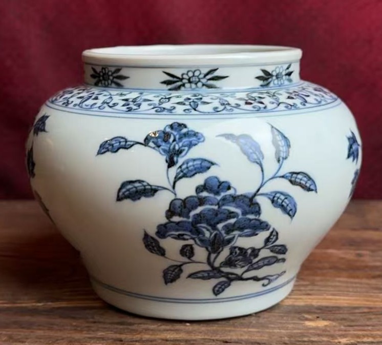 名称:明永乐青花折枝花卉纹罐