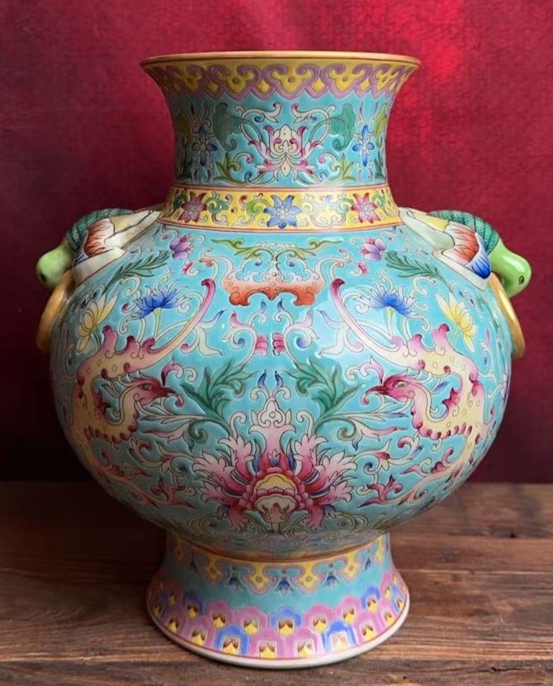 清乾隆珐琅彩凤穿牡丹纹双耳尊
