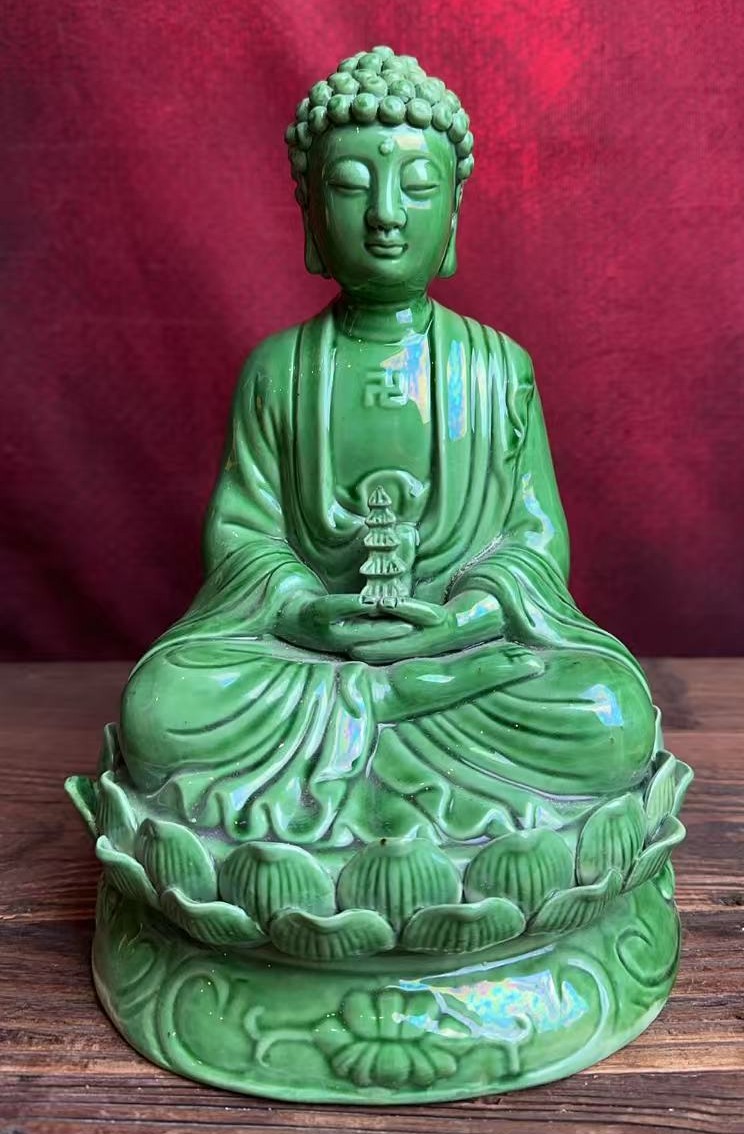 名称:清乾隆翡翠绿釉佛造像