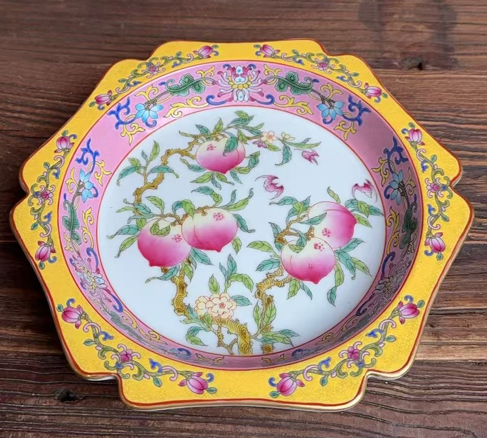 名称:清雍正珐琅彩福寿纹折沿盘