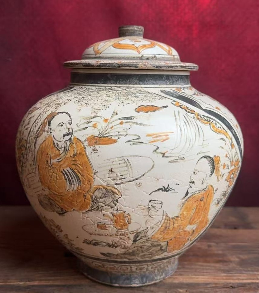 磁州窑彩绘人物纹盖罐