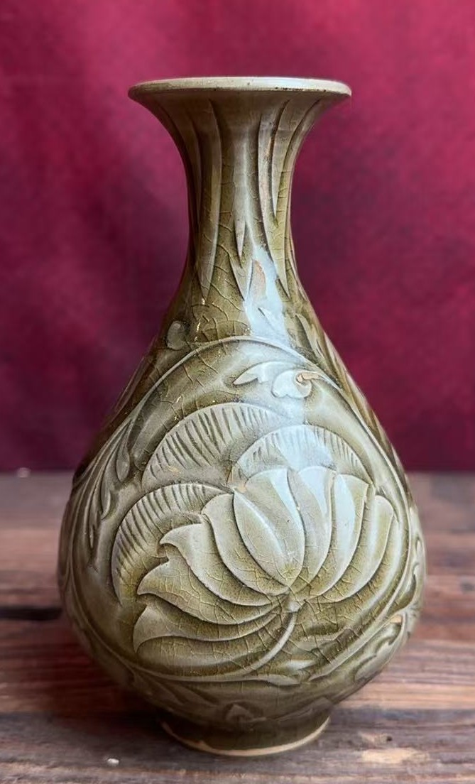 耀州窑刻花长颈瓶