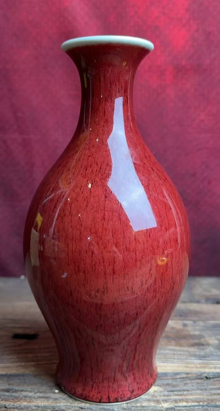 清康熙郎红釉橄榄瓶