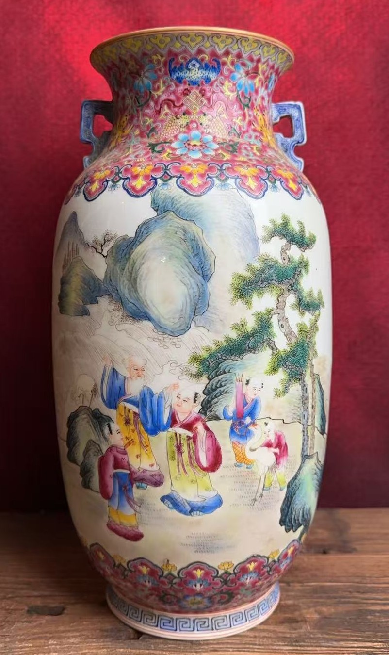名称:清嘉庆粉彩海屋添筹图双耳瓶