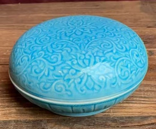 名称:清光绪蓝釉刻花盖盒