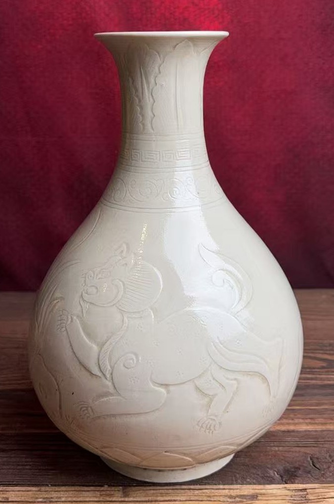 名称:定窑白釉刻花玉壶春瓶