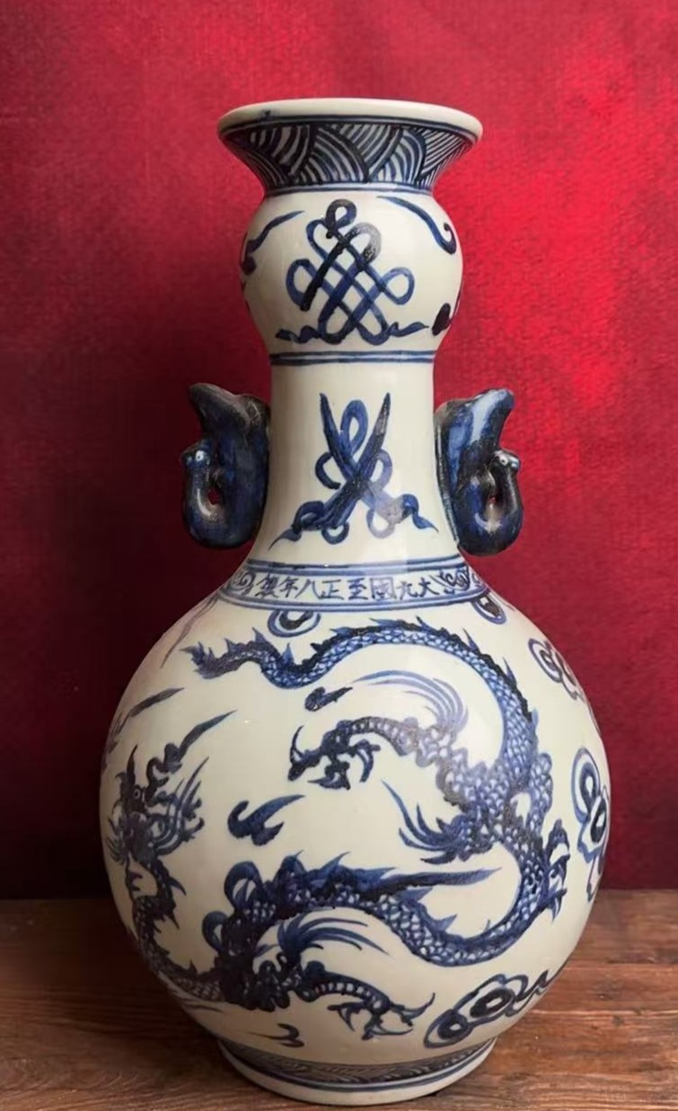 名称:元青花龙纹双耳瓶
