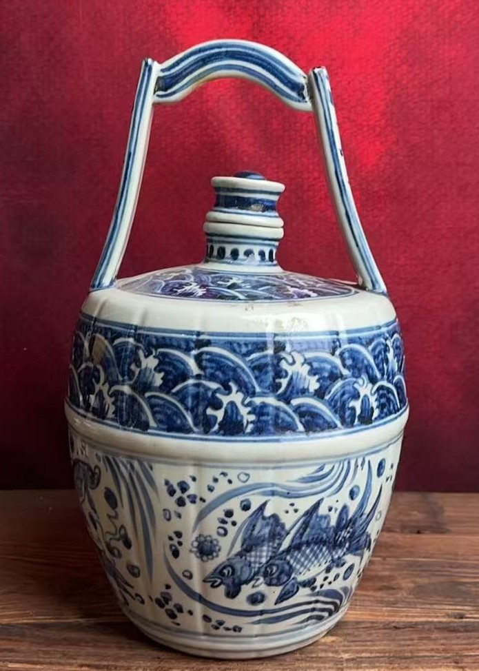 名称:元青花鱼藻纹提梁壶
