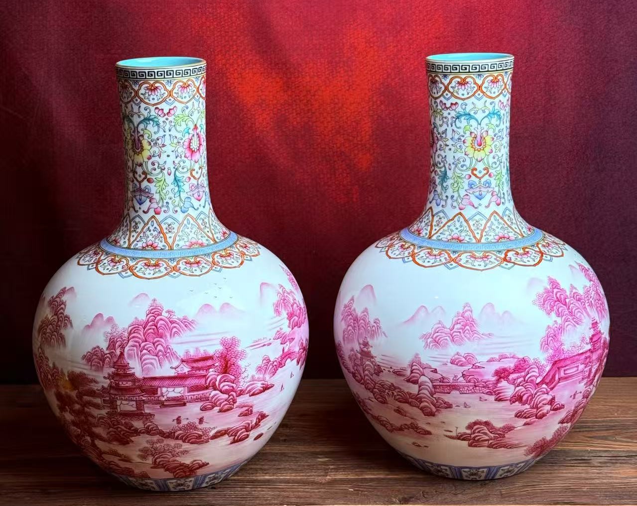 名称:清乾隆胭脂水彩通景图天球瓶