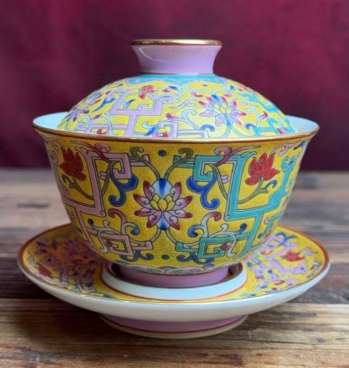 名称:清雍正黄地珐琅彩花卉纹盖碗