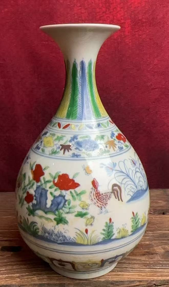 明成化斗彩洞石锦鸡纹玉壶春瓶