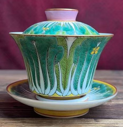 名称:清雍正洋彩白菜三才盖碗
