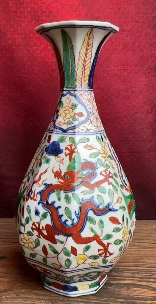 明万历青花五彩龙凤纹瓶