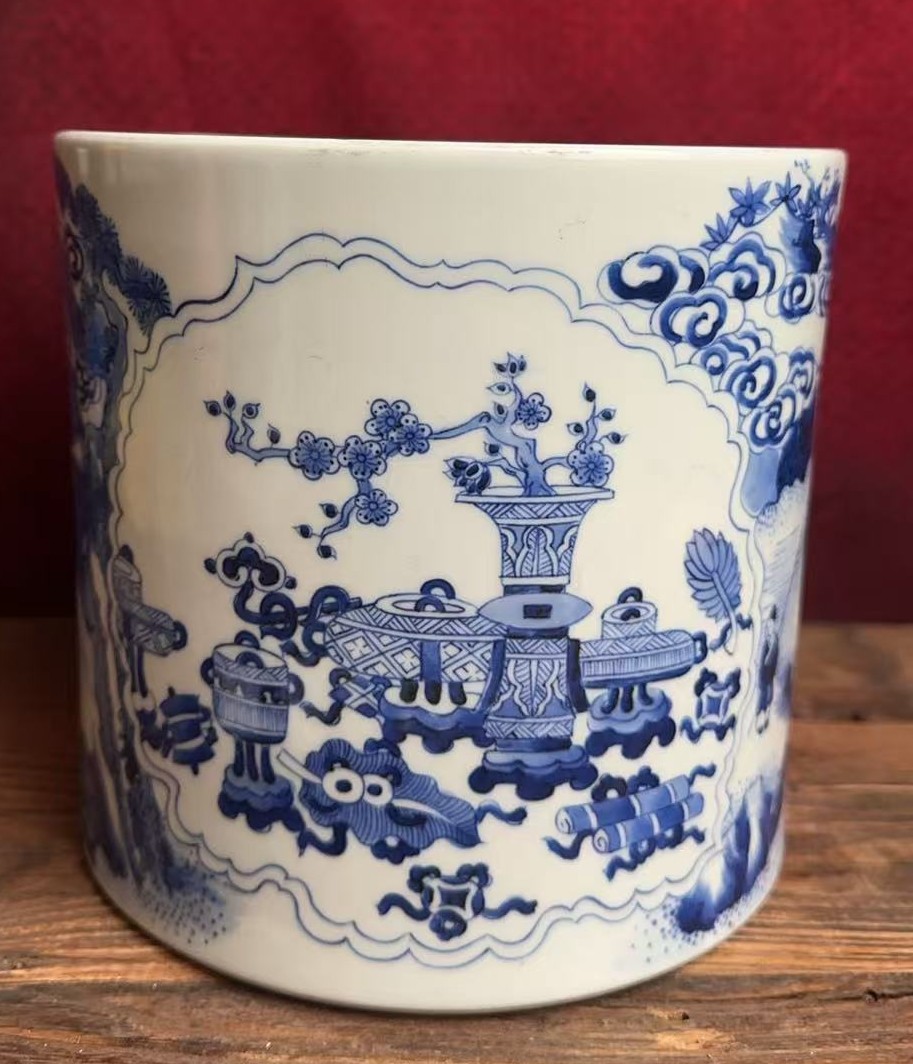 名称:清顺治青花暗八宝纹笔筒