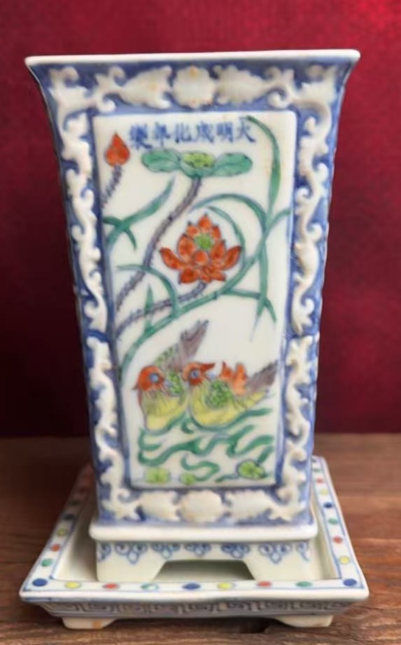 名称:明成化斗彩莲池鸳鸯纹花盆