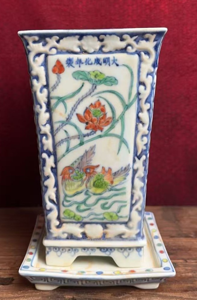 名称:明成化斗彩莲池鸳鸯纹花盆