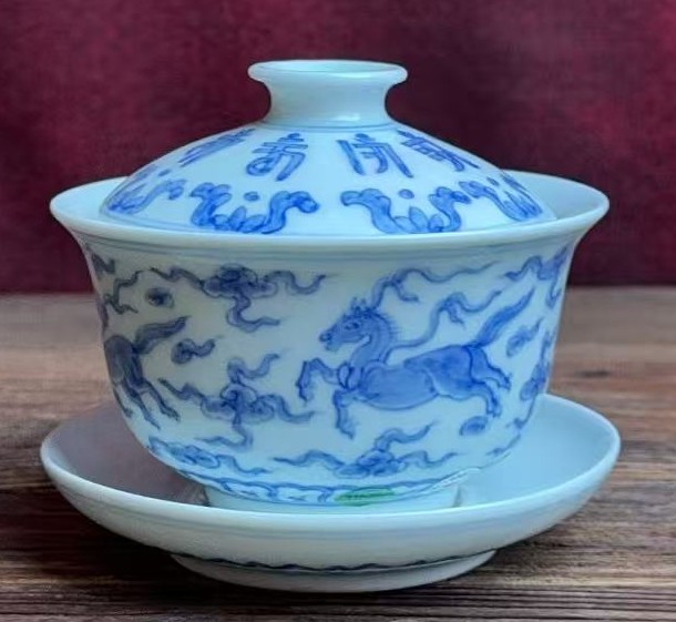 名称:明成化青花天马纹盖碗