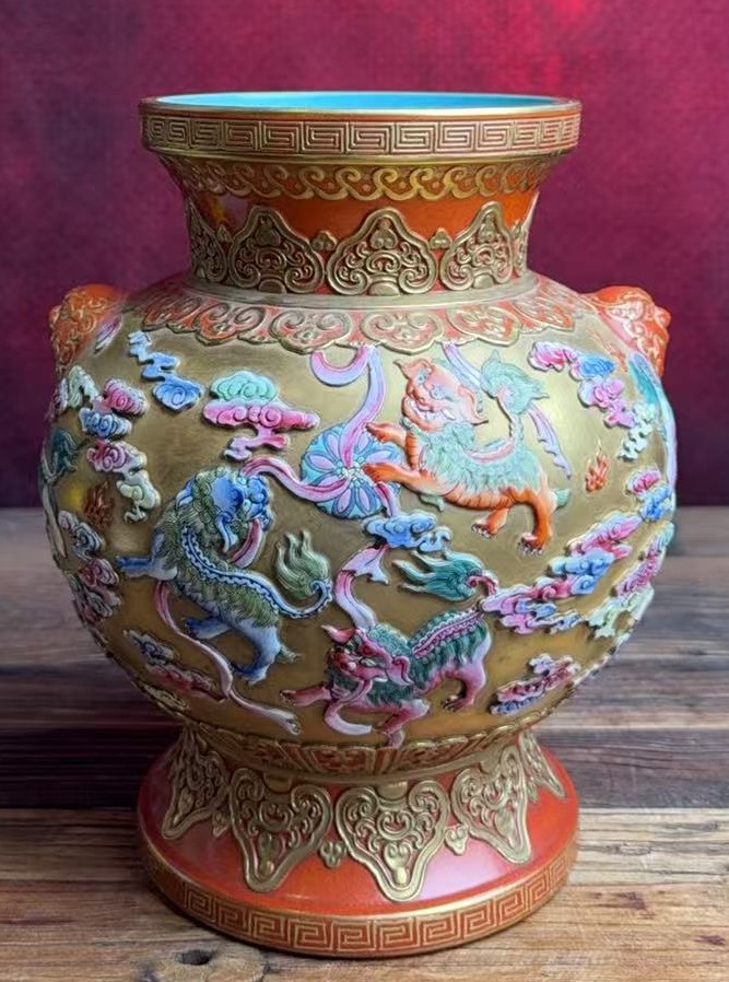 清乾隆洋彩描金瑞兽纹双耳尊