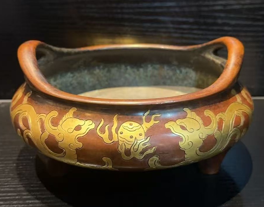 名称:明·铜鎏金双耳炉