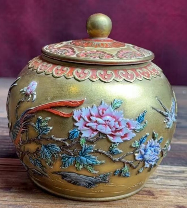 名称:清乾隆浮雕描金花鸟纹盖罐