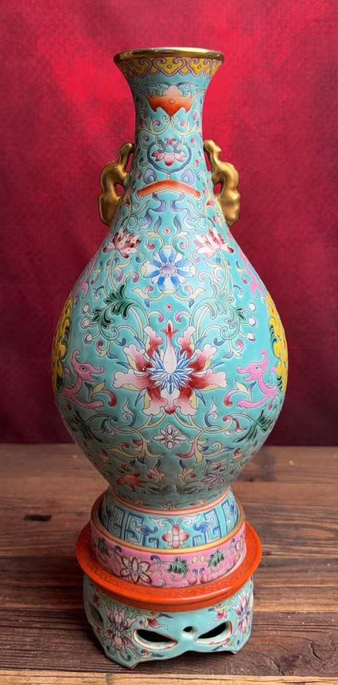 清乾隆洋彩描金牡丹纹转体瓶
