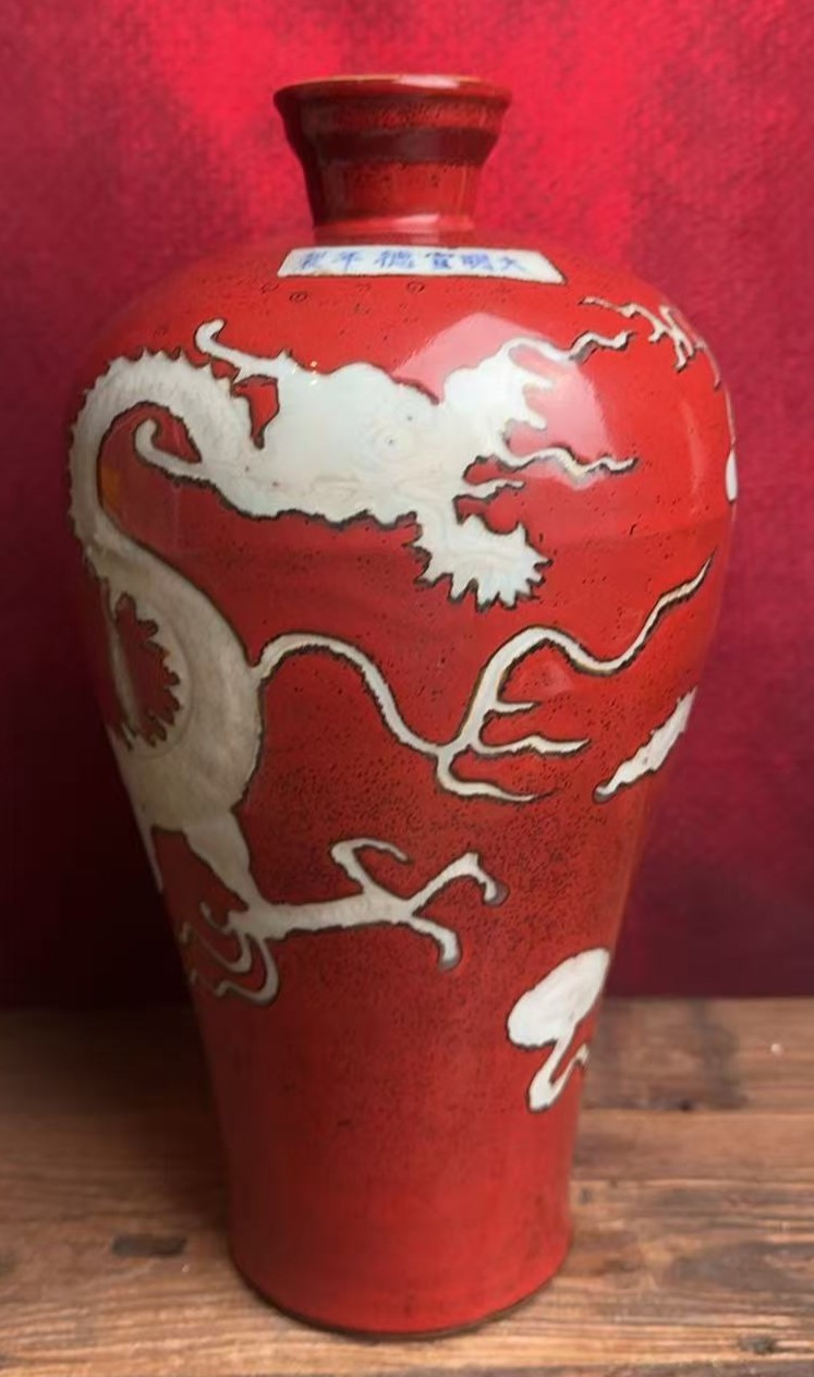 名称:明宣德红釉暗刻白龙纹梅瓶