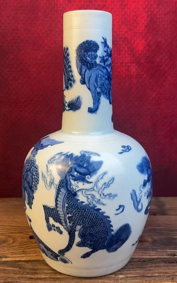 名称:清康熙青花瑞兽纹直口瓶