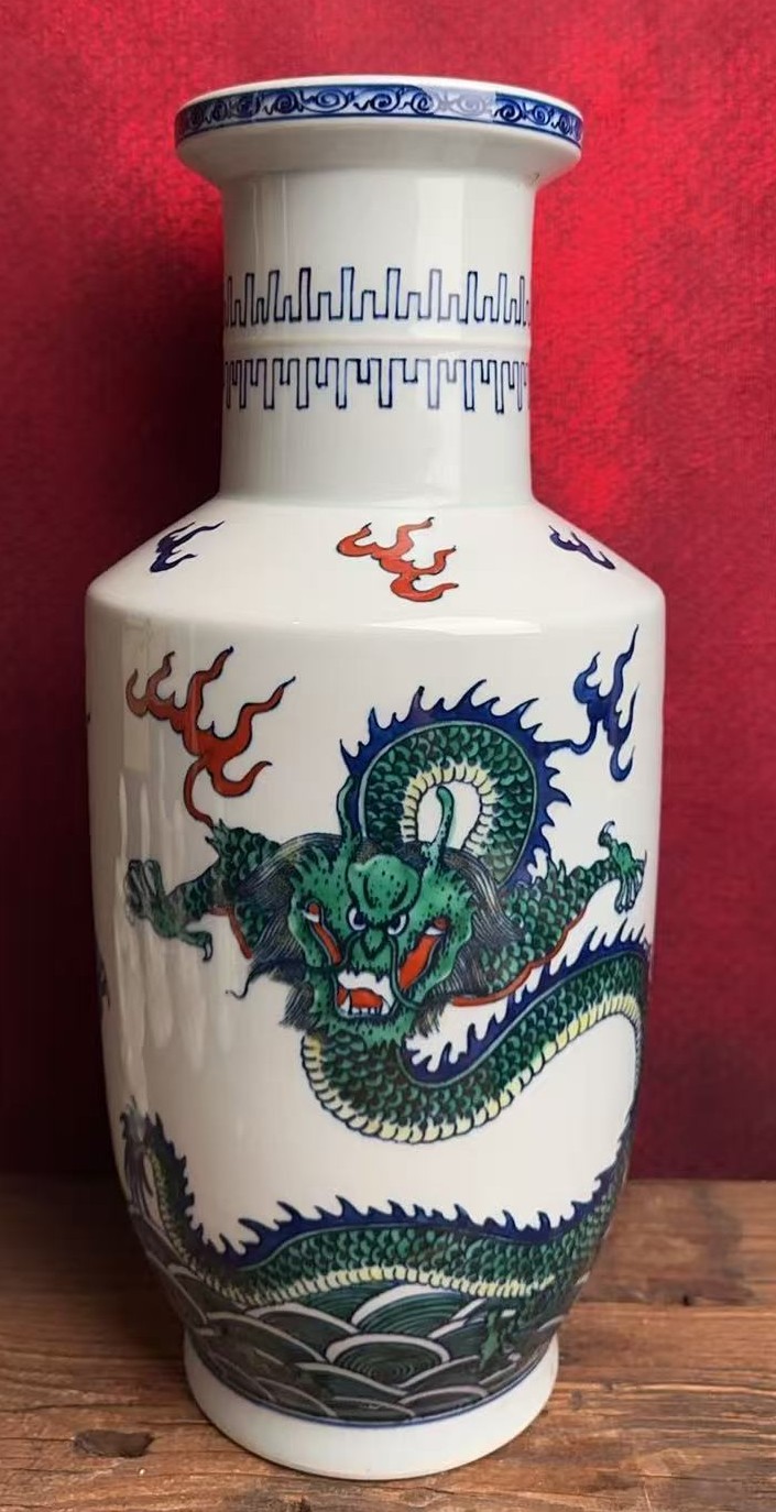 名称:清雍正斗彩海水龙纹棒槌瓶