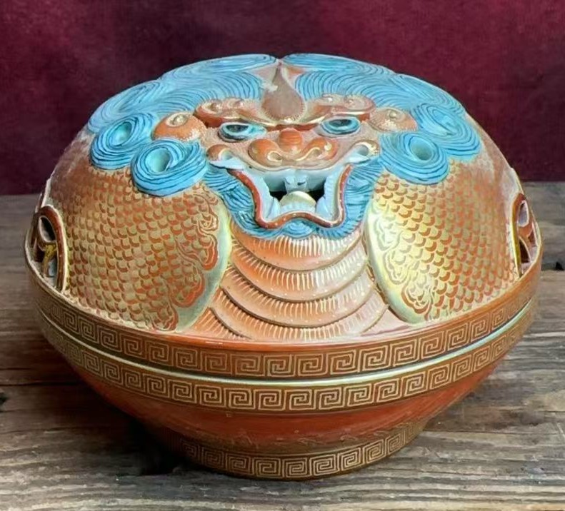 名称:清乾隆矾红描金镂雕龙纹香薰