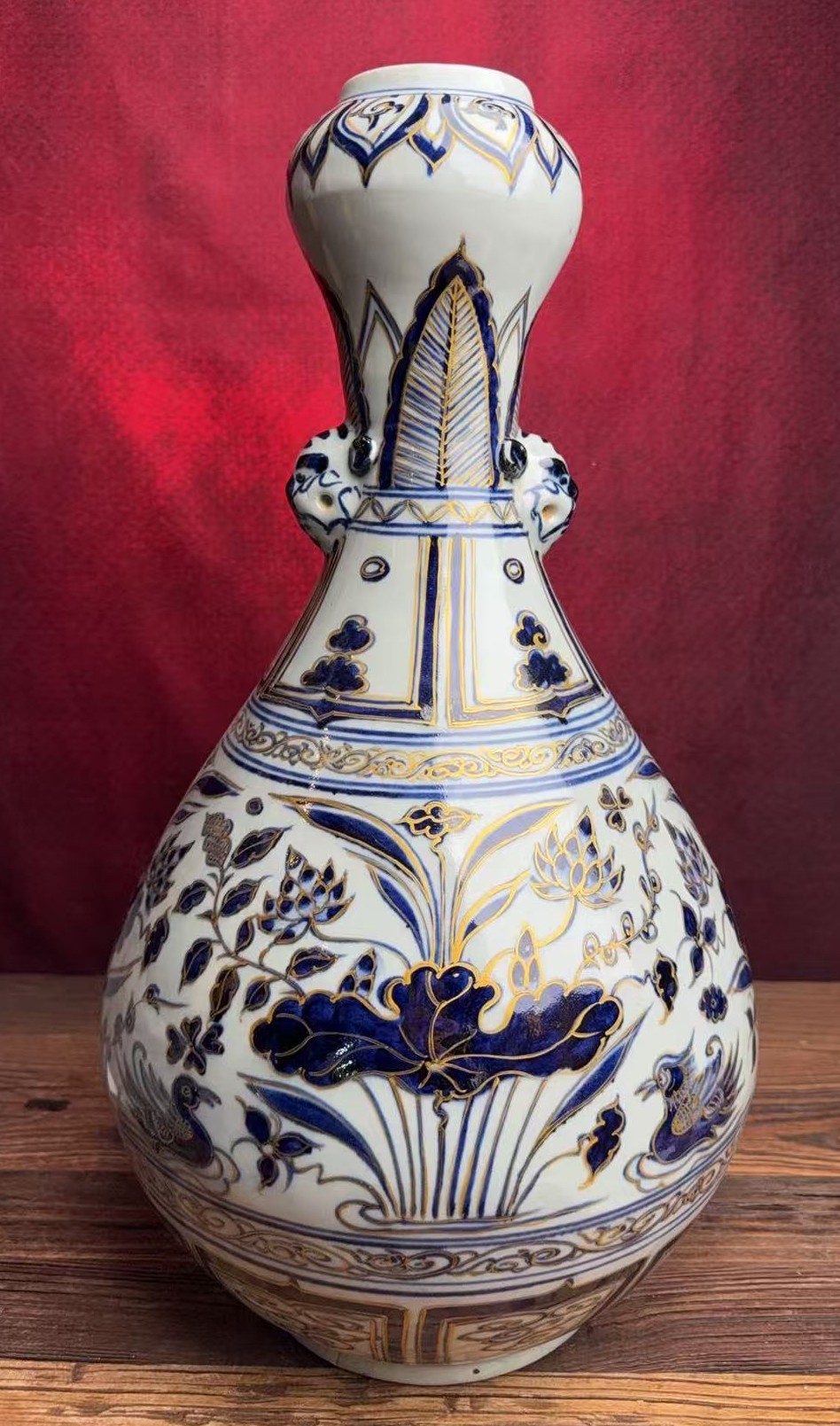 名称:元青花鸳鸯戏莲纹蒜头瓶