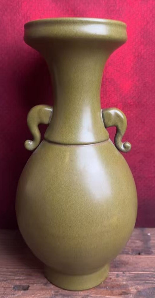 名称:清乾隆茶叶沫釉双耳盘口瓶