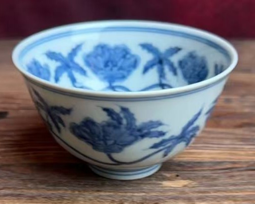 名称:明成化青花秋葵纹杯