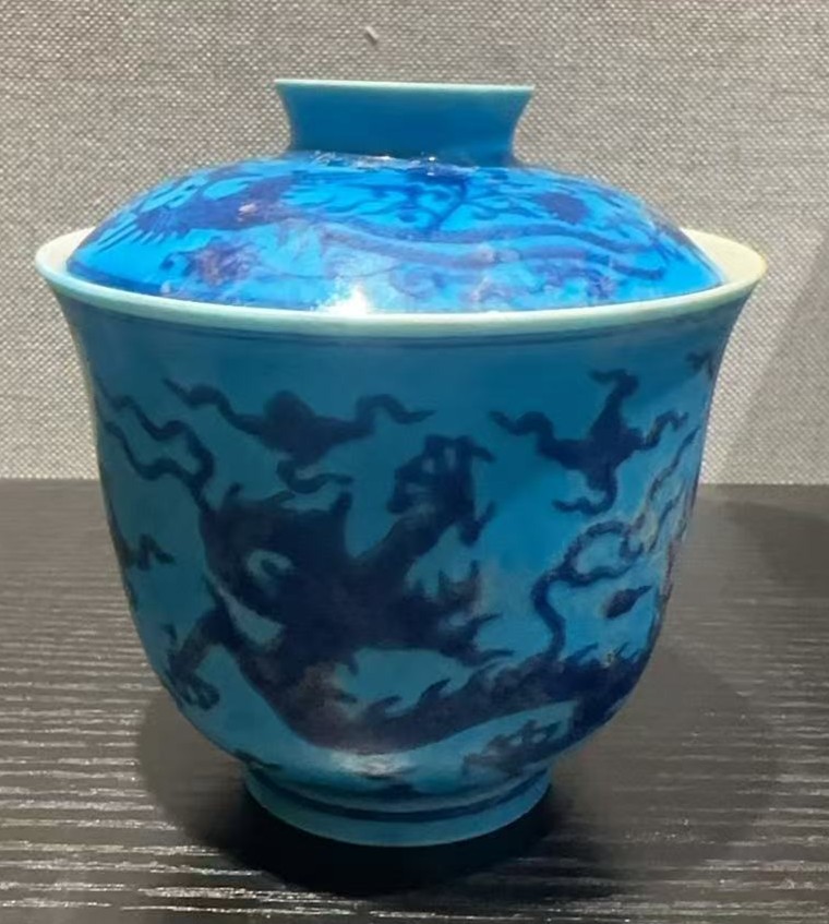 名称:明成化蓝釉青花龙纹盖碗
