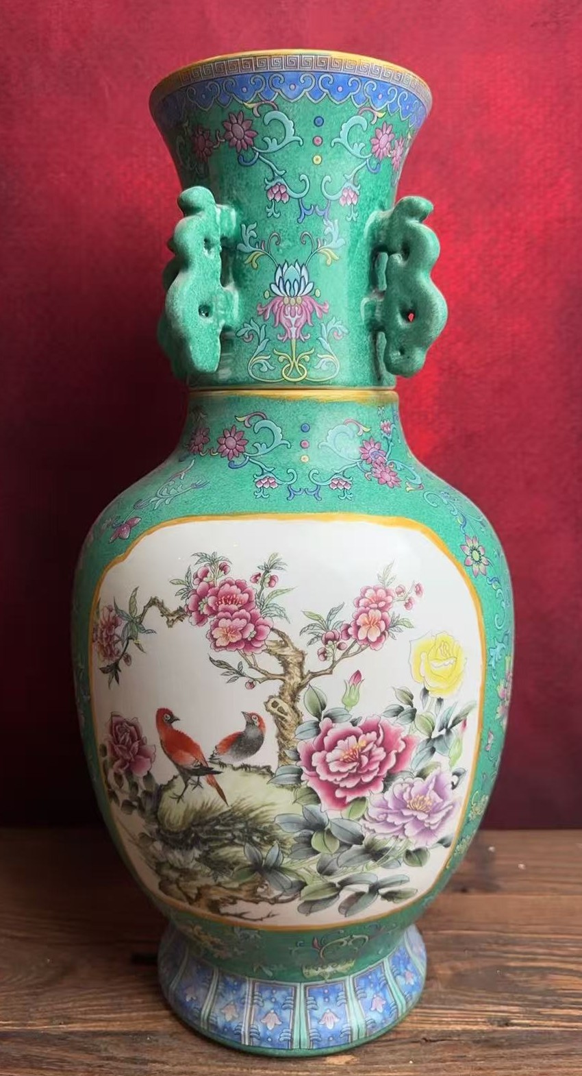 名称:清乾隆珐琅彩开窗花鸟纹转心瓶