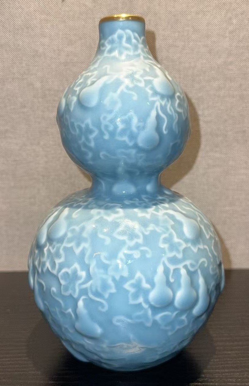 名称:清乾隆天青釉浮雕福禄延绵纹葫芦瓶
