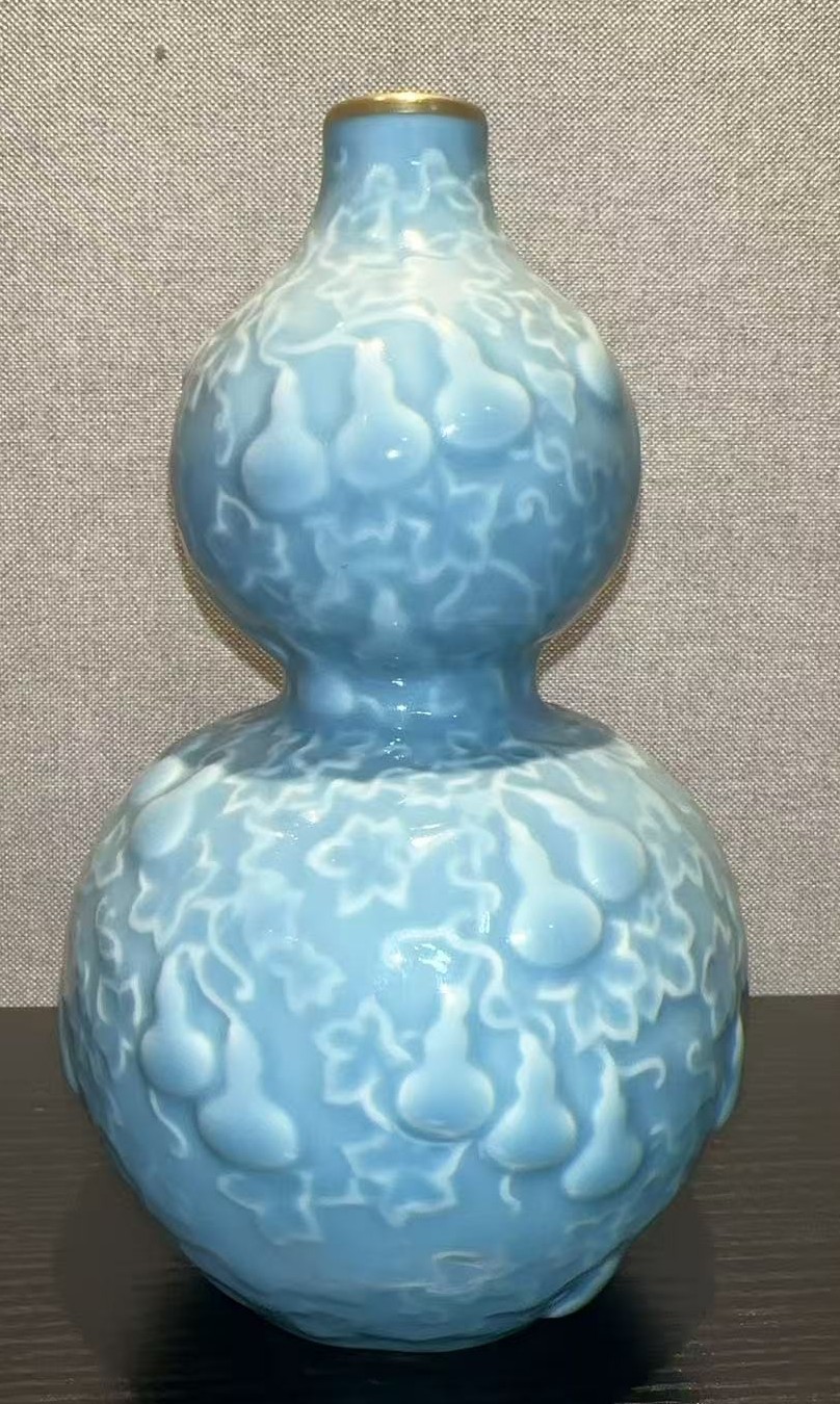 名称:清乾隆天青釉浮雕福禄延绵纹葫芦瓶