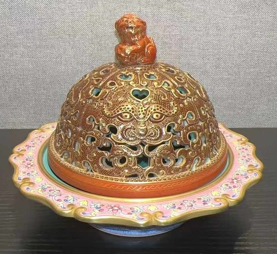名称:清乾隆珐琅彩描金兽钮熏炉