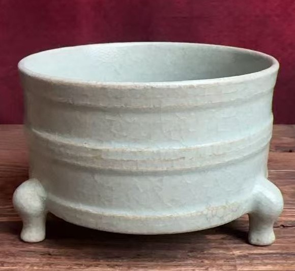 名称:汝窑弦纹三足炉