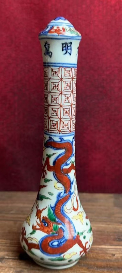 明万历青花五彩龙纹笔杆