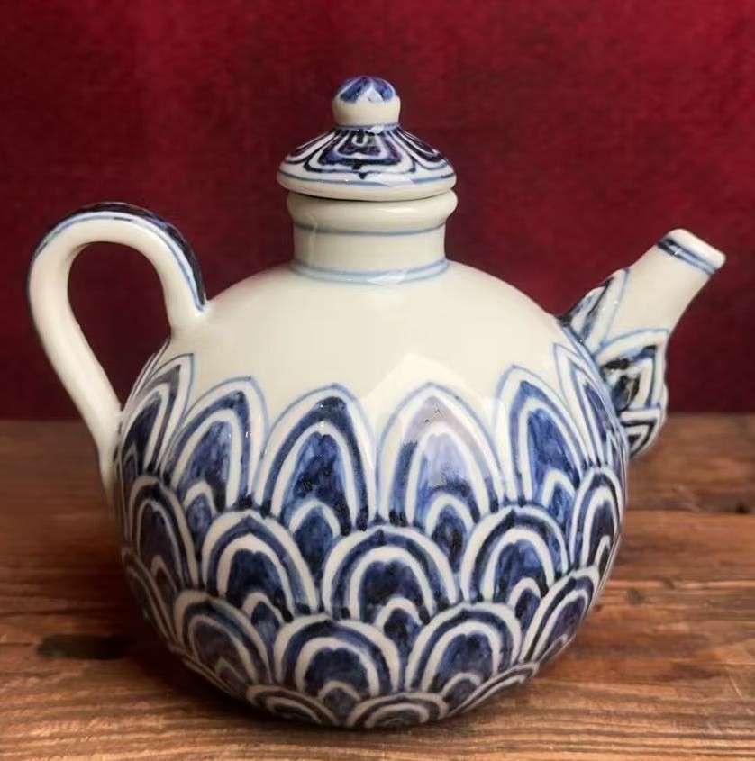 明宣德青花莲瓣纹执壶