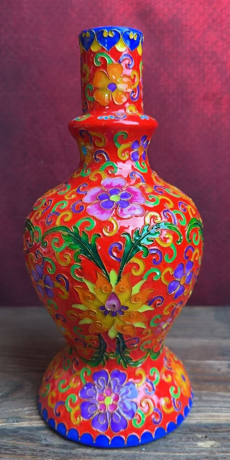 名称:清乾隆掐丝珐琅花卉纹吉字瓶