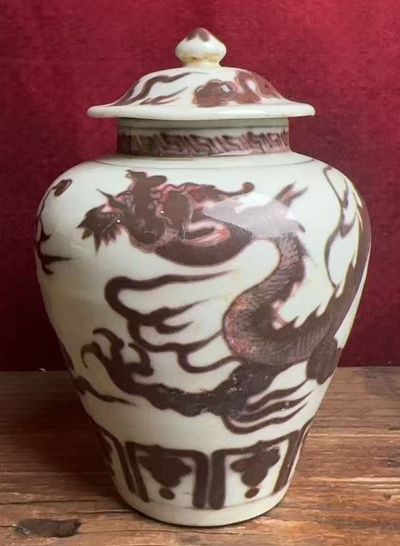 明洪武釉里红云龙纹盖罐