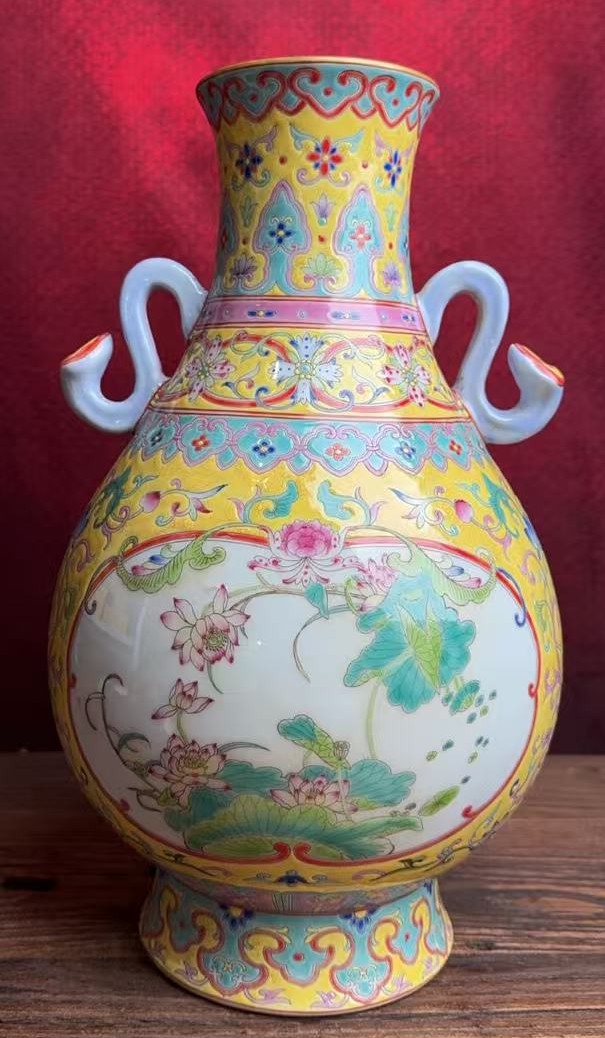 名称:清雍正珐琅彩开窗花卉纹双耳尊