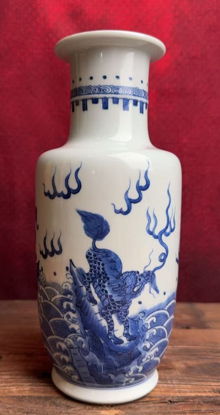 名称:清顺治青花瑞兽纹棒槌瓶